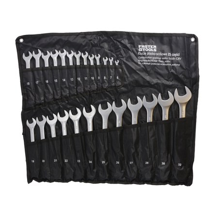 FASTER TOOLS Klucze płasko-oczkowe satyna zestaw 25szt. 6-32 mm